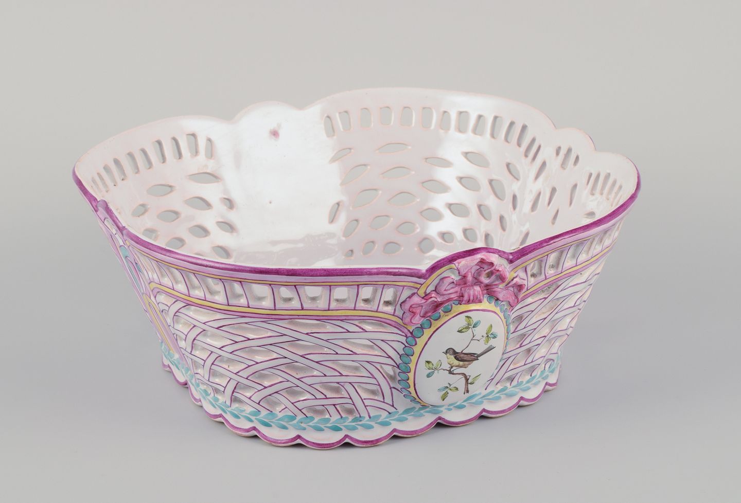 Emile Gallé (1846-1904), French glass artist and designer, Nancy, France. Large pierced faience bowl.