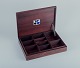 Divided with nine adjustable compartments and a holder for a cigar cutter.