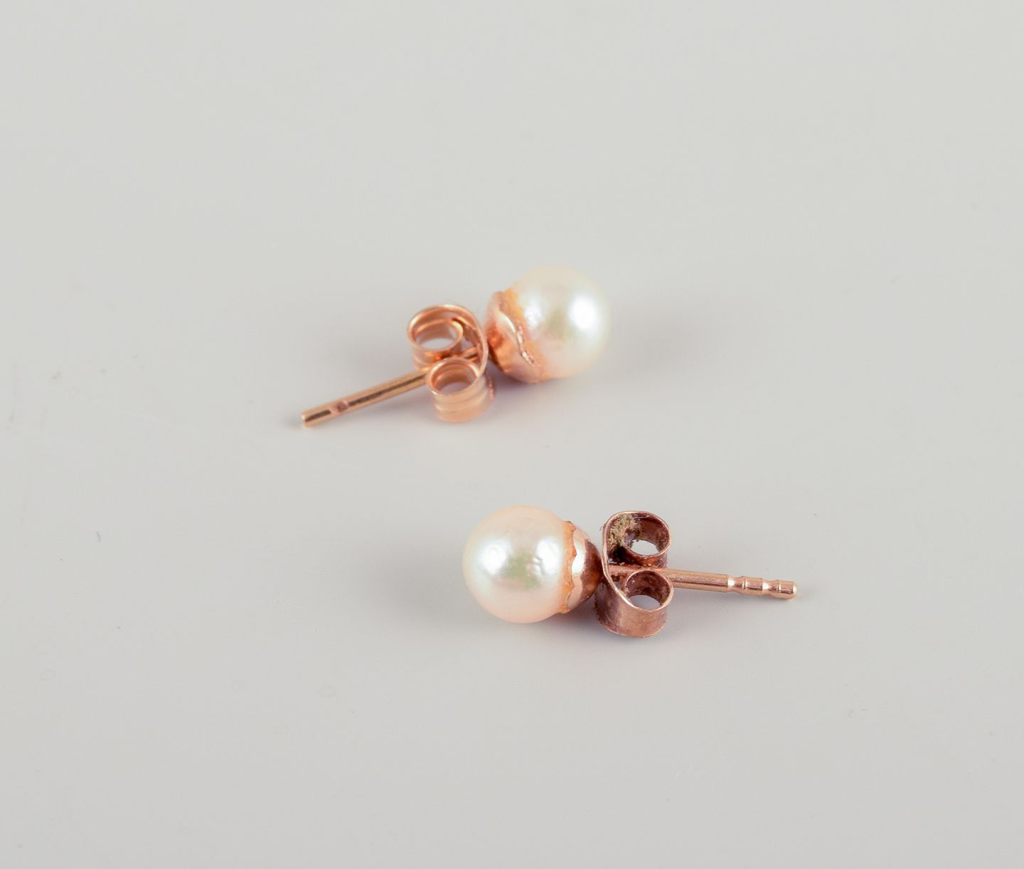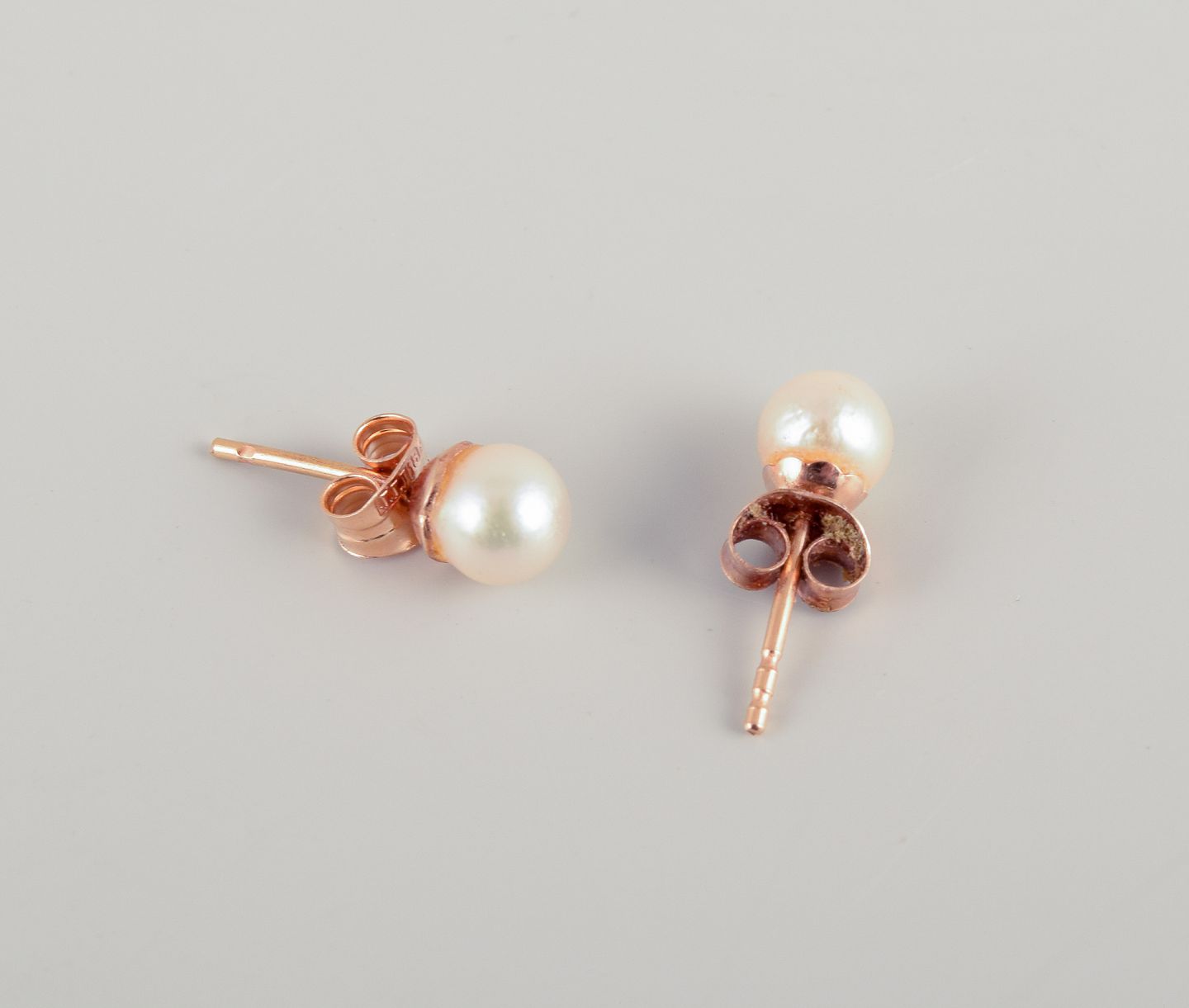 Swedish goldsmith. A pair of classic ear studs in 18 karat gold adorned with cultured pearls.