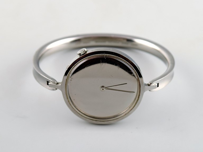 Damearmbåndsur af stål. Mekanisk værk med manuelt optræk. 1980'erne.