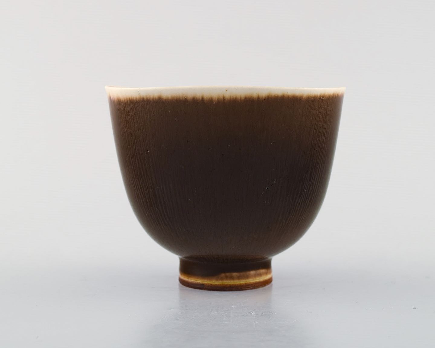 Berndt Friberg Studio keramik skål. Moderne svensk design. Unika, håndlavet. Fantastisk glasur i brune nuancer. 1956. 1. sortering. Signeret og dateret. I flot stand. Måler : 9 x 7,5 cm.