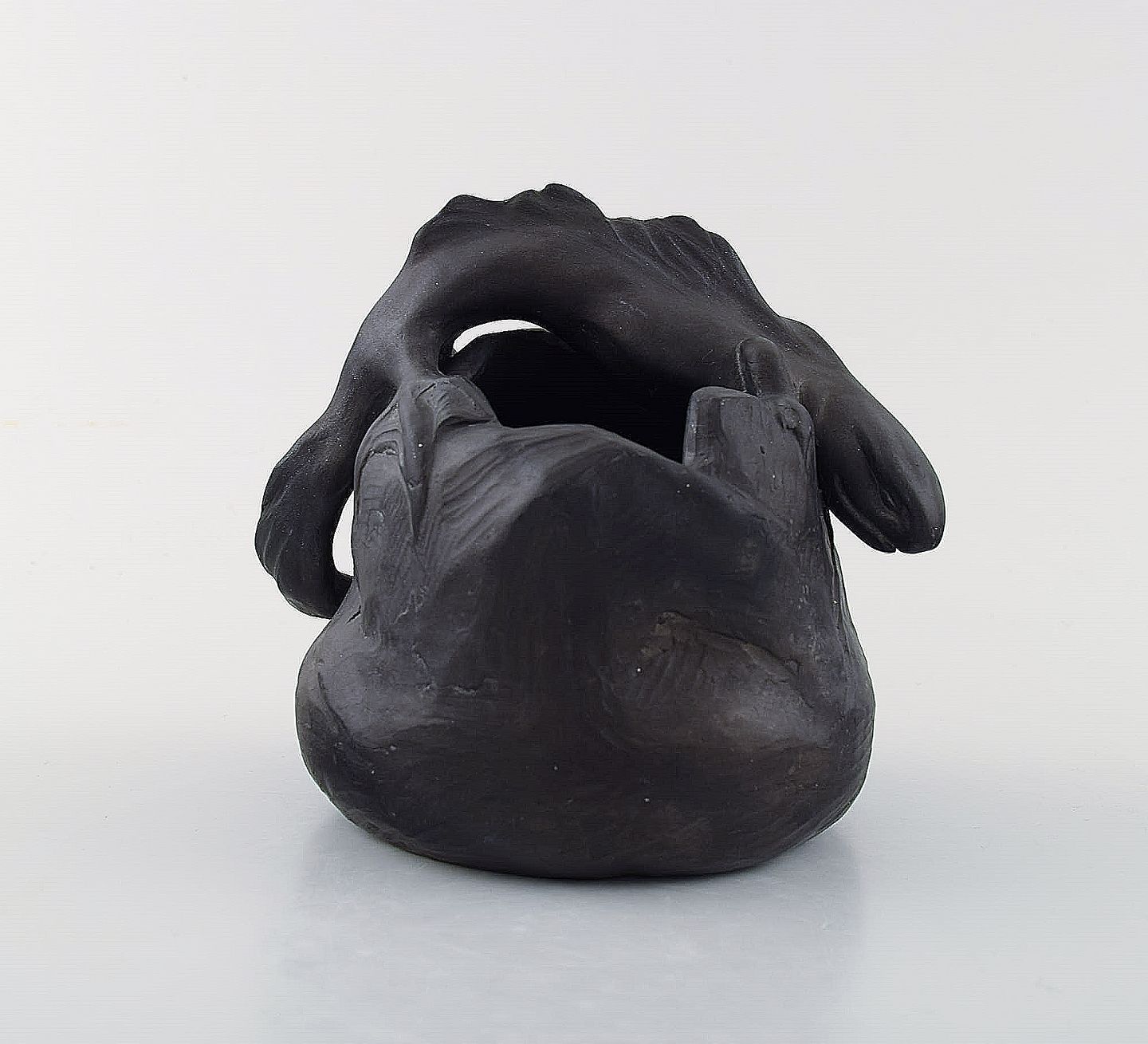 L. Hjorth, Bornholm. Art nouveau terracotta skål med salamander. Modelnummer 760. Ca. 1910. Måler: 14 x 12,5 cm. Stemplet. I perfekt stand.