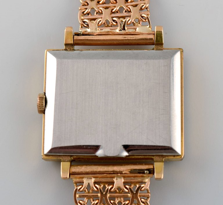 Tidligt 18 karat guld Omega herre armbåndsur. Stilrent art deco design. 1930/40'erne. 18 karat guld lænke, svenske kontrolstempler.