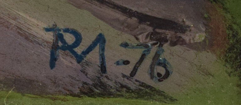 Ubekendt kunstner. Færøsk motiv. Olie på plade. I flot stand. Signeret utydeligt samt dateret 1976. Mål: 28,0 x 40,0 cm. / Total: 31,0 x 43,0 med ramme.