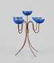 Gunnar Ander for Ystad Metall, Sverige. Høj lysestage i messing og blåt kunstglas formet som blomster. Til fem lys. 1950'erne. I flot stand med patina. Mål: D 21,0 cm. x H 22,5 cm.