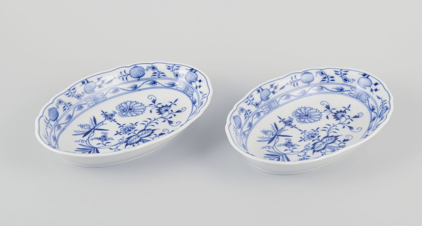 Meissen, Tyskland. To ovale løgmønstrede skåle af porcelæn.
