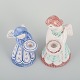 Mål: Højde 10 cm x Bredde 7,5 cm (blå engel); Højde 11,5 cm x Bredde 8 cm (grøn engel).