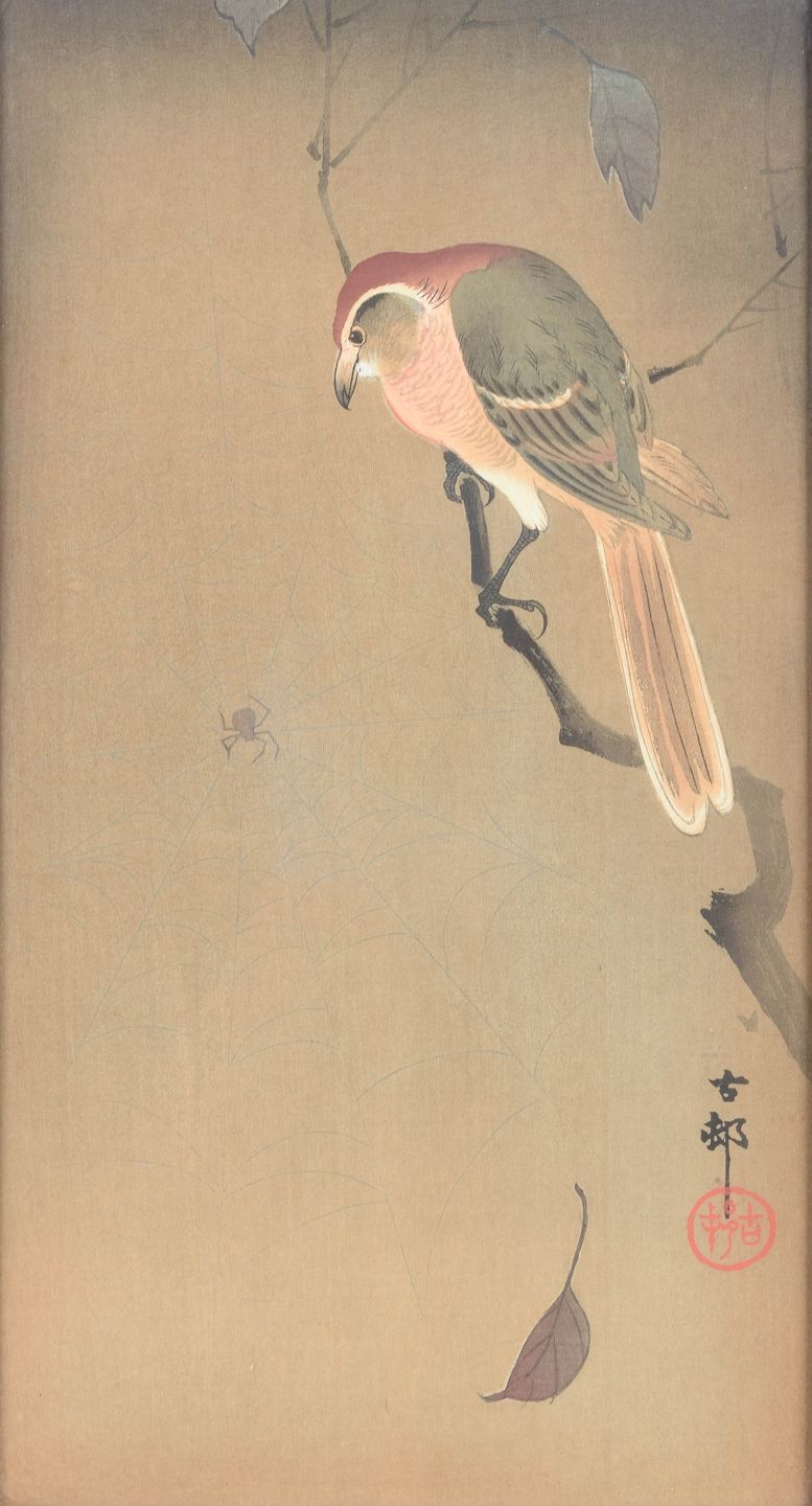 Ohara Koson (1877–1945), Fuglen og edderkoppen.