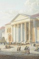 Et stemningsfuldt prospekt af Københavns rådhus (det tidligere klassicistiske rådhus, beliggende på Nytorv, opført 1803–1815 efter tegninger af arkitekt C. F. Hansen, nedrevet i 1890’erne). Motivet viser pladsen foran rådhuset med mennesker i tidens dragter, hestevogne og et levende bymiljø. Værket er tegnet af den engelske officer og rejsende Lieutenant Colonel Robert Batty (1789–1848), kendt for sine detaljerede prospekter fra europæiske byer, og graveret af E. L. Roberts.