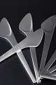 Sæt af otte fiskeknive i model Caravel, design Henning Koppel. Stramt modernistisk formsprog med organisk bladformet blad.
