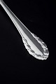 Middagsgaffel i mønsteret "Liljekonval" (Lily of the Valley). Blankpoleret sterling sølv, elegant skaftafslutning med diskret blomster- og bladmotiv.