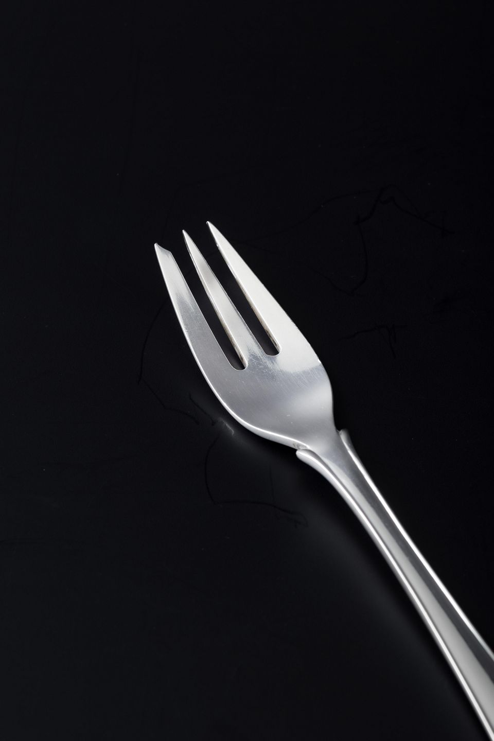 Kagegaffel i mønsteret "Liljekonval" (Lily of the Valley). Blankpoleret sterling sølv, elegant skaftafslutning med diskret blomster- og bladmotiv.