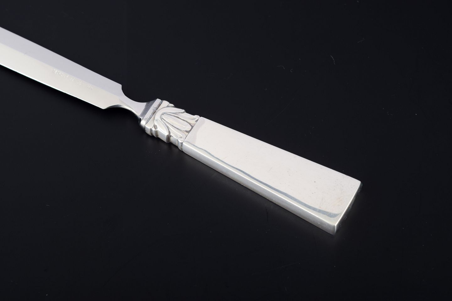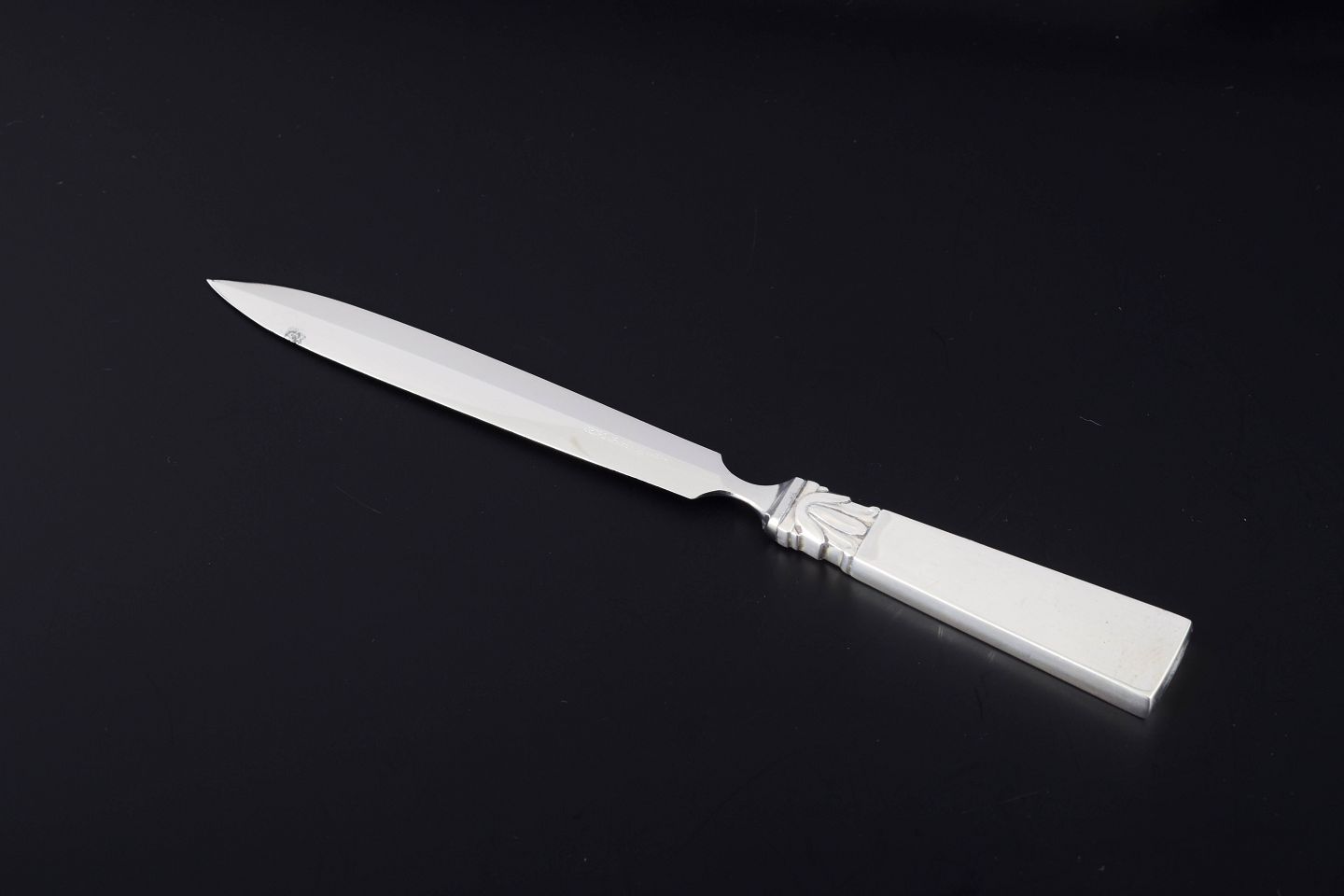 En klassisk skrivebordsgenstand fra Georg Jensen, fremstillet i perioden 1933–1944 med skaft i sterling sølv og blad i rustfrit stål.