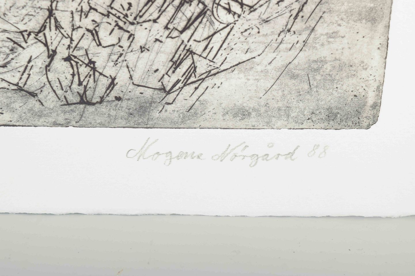 Mogens Nørgård (f. 1945) er uddannet på Det Kgl. Danske Kunstakademi. Han har udstillet bredt i Danmark og udlandet og er repræsenteret i flere museer og samlinger, bl.a. Statens Kunstfond, Ny Carlsbergfondet og Kobberstikssamlingen. Nørgård arbejder både realistisk og abstrakt med fokus på mødet mellem kultur og natur.