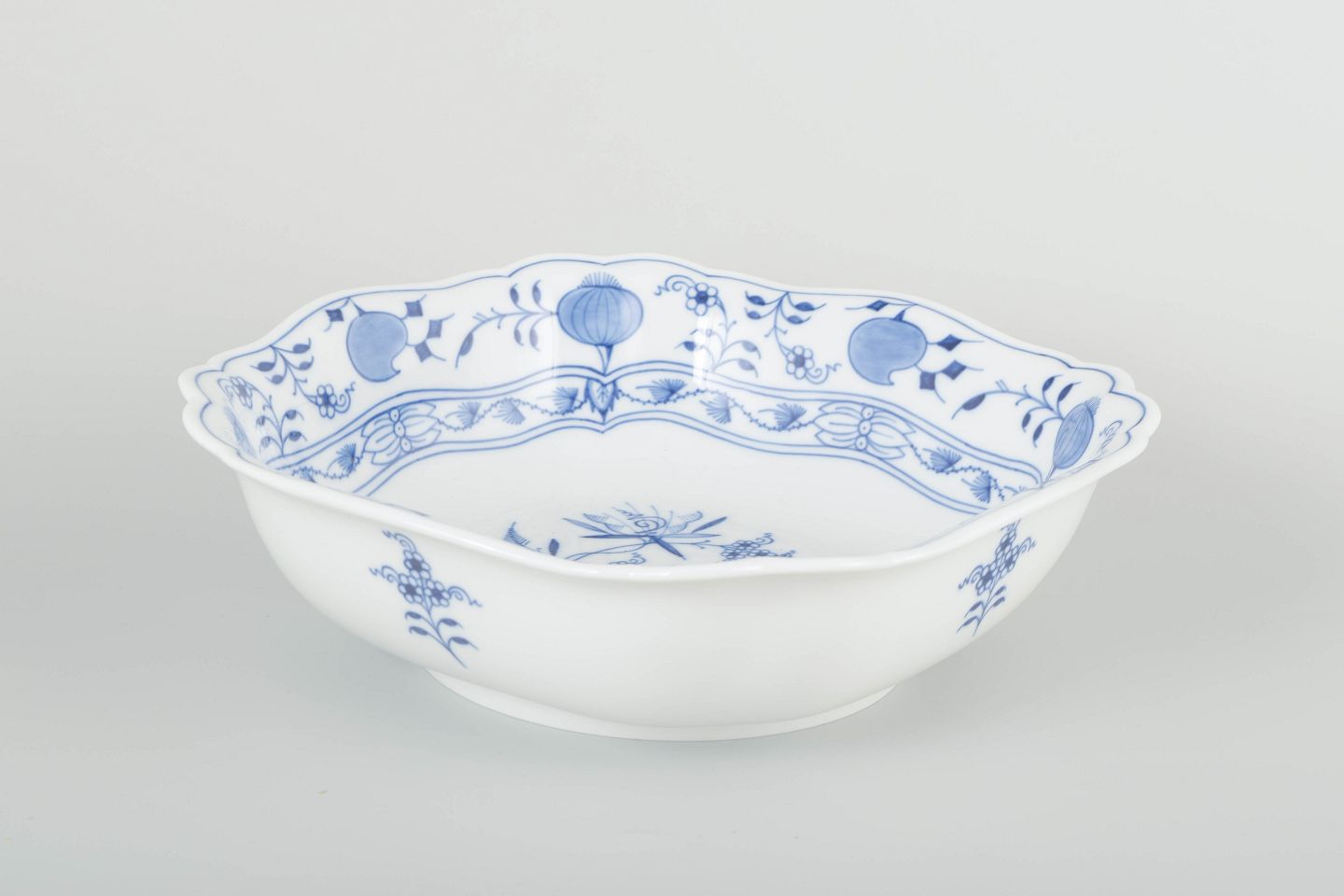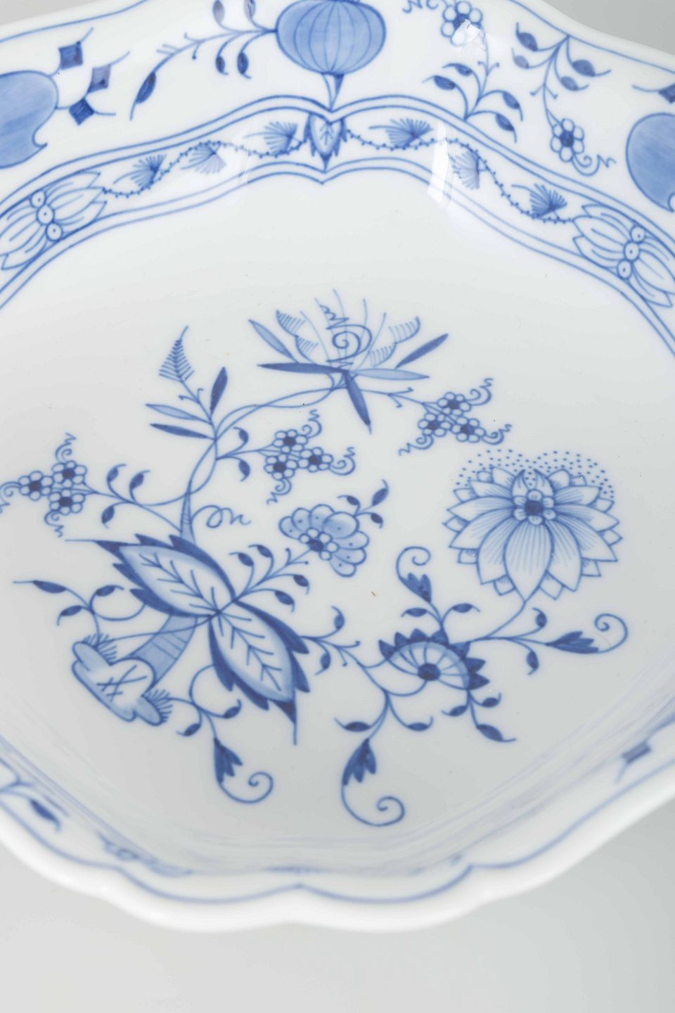 “Løgmønstret” er et af Meissens mest ikoniske mønstre, udviklet i midten af 1700-tallet og inspireret af asiatisk porcelæn. Dekorationen, der oprindeligt skulle gengive granatæbler og ferskner, blev senere opfattet som løg – deraf navnet. Serien er fortsat blandt Meissens mest populære og klassiske stel.