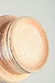Cylindrisk stentøjsvase med karakteristiske indgraverede bånd og varm orange-brun glasur i relief.