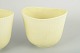 Par af keramiske blomsterkrukker i den karakteristiske “Vinda”-form med let asymmetrisk, bølgende kant og rillet struktur. Glasur i blød lysegul nuance. Stemplet “Gustavsberg Sweden” under bunden.