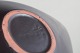 Keramisk skål i den ikoniske “Trio”-serie, dekoreret med grafiske linjer i hvid og gul på mørk baggrund. Elegant, aflang form, typisk for Oldfors’ modernistiske formsprog.