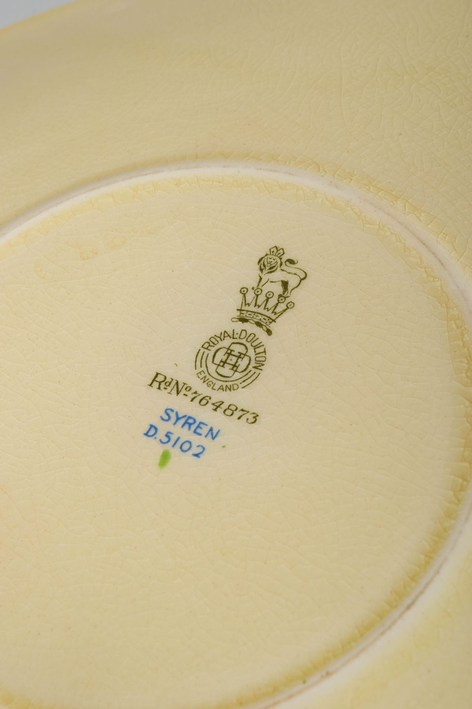 Clarice Cliff’s work for Royal Doulton represents a high point of British Art Deco ceramics. Her use of bold colours, rhythmic patterning and modern compositions marked a clear departure from earlier, more traditional decoration. The “Syren” series is a characteristic example of this approach and is today considered one of her more desirable decorative patterns.