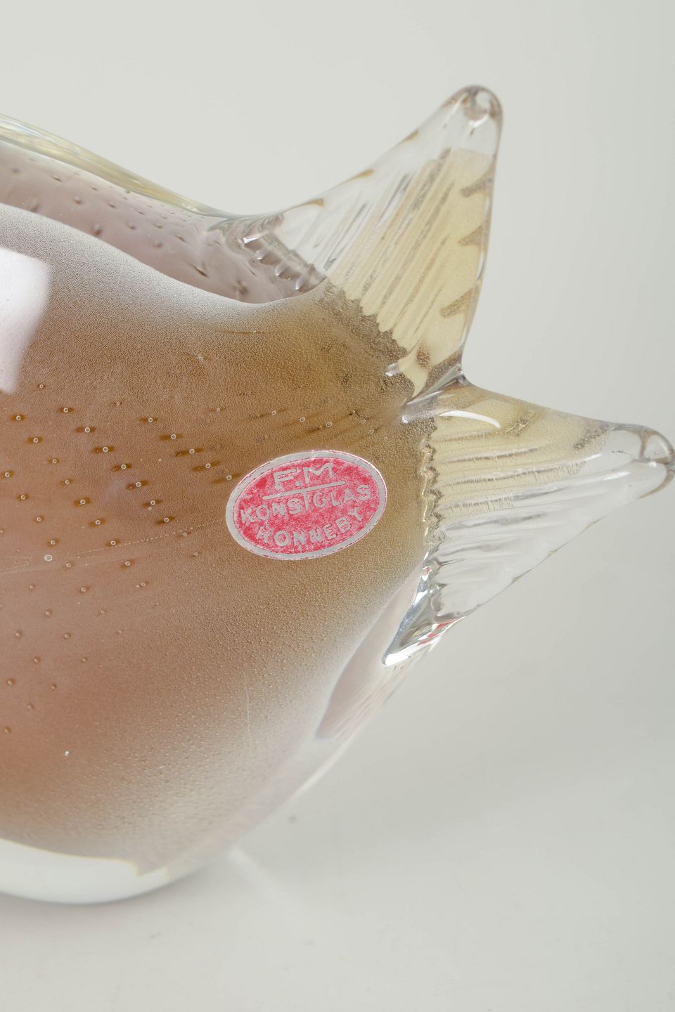 Organisk formet fisk i massivt kunstglas med bløde konturer i rosa og hvide toner. Udført med indkapslede luftbobler og matteret parti.