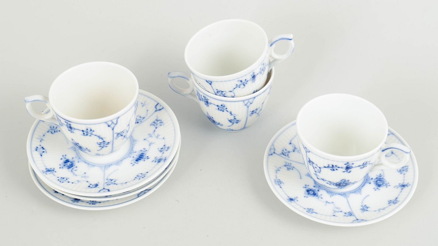 Royal Copenhagen Musselmalet Riflet, sæt på fire mokka-kopper.