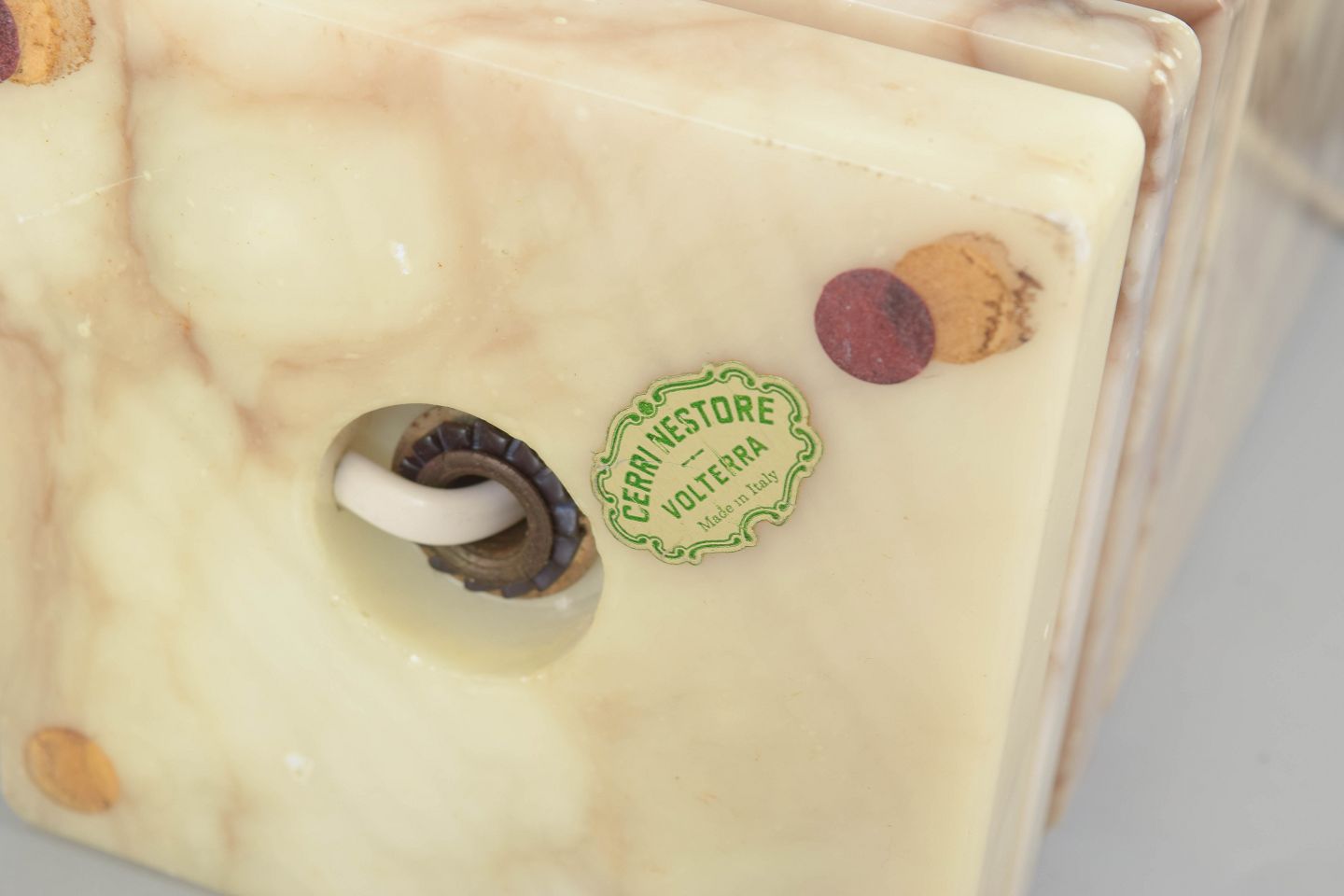 Cerri Nestore operated in Volterra, Tuscany, a town renowned for its centuries-old alabaster carving tradition. During the twentieth century, many Volterra workshops produced decorative and functional objects in alabaster, taking advantage of the stone’s natural translucency, especially for lighting. Pieces from the 1960s and 1970s combine traditional craftsmanship with the clean, geometric forms characteristic of modern Italian design.