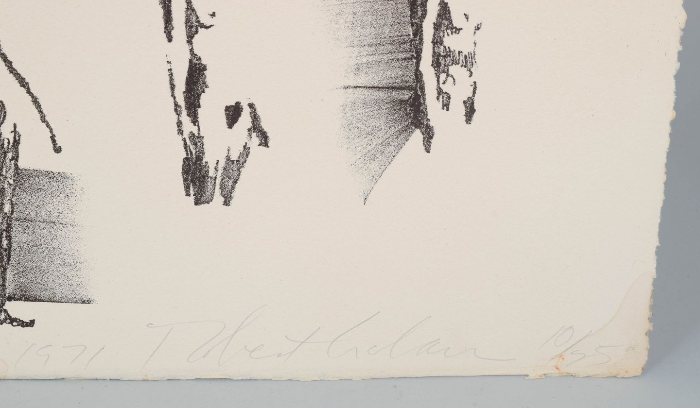 Grafisk komposition med studier af stående nøgne figurer udført som litografi, signeret med blyant, dateret 1971 og nummereret 10/55.
