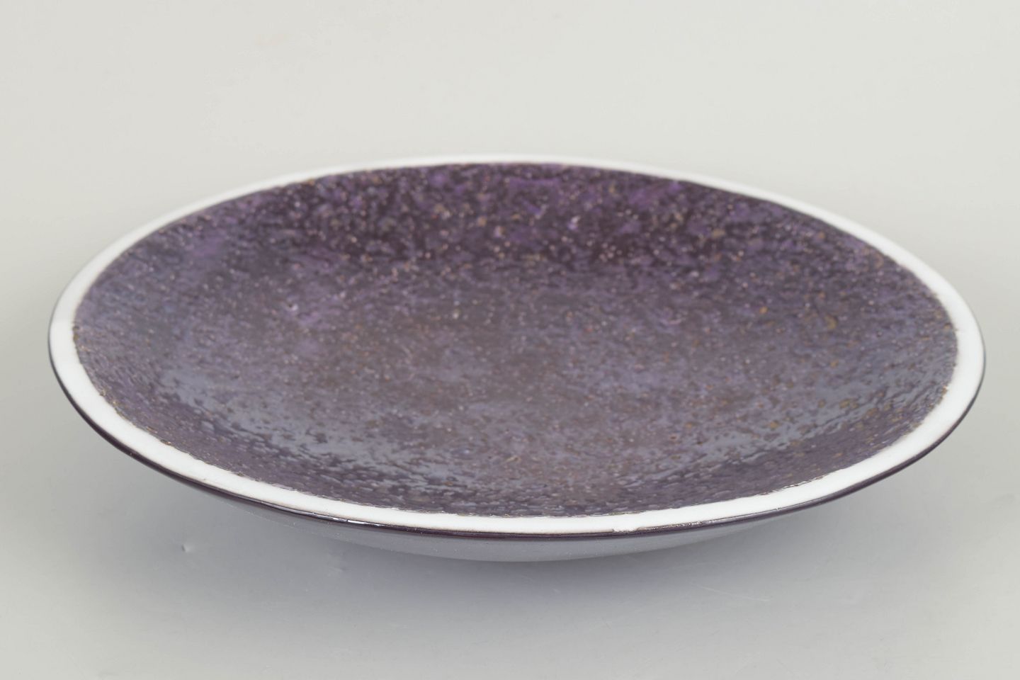Large stoneware dish model 2401 with a characteristic thick glaze in deep purple tones and a slightly cratered textured surface.