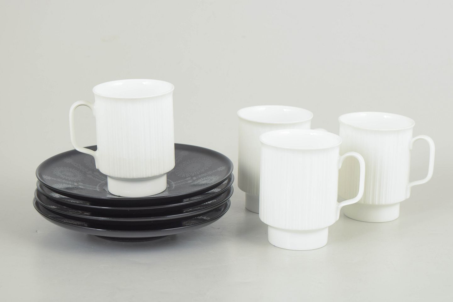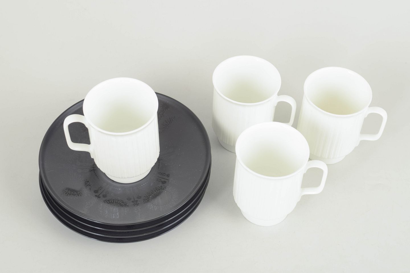 Tapio Wirkkala for Rosenthal, set of four demitasse espresso cups with matching saucers.