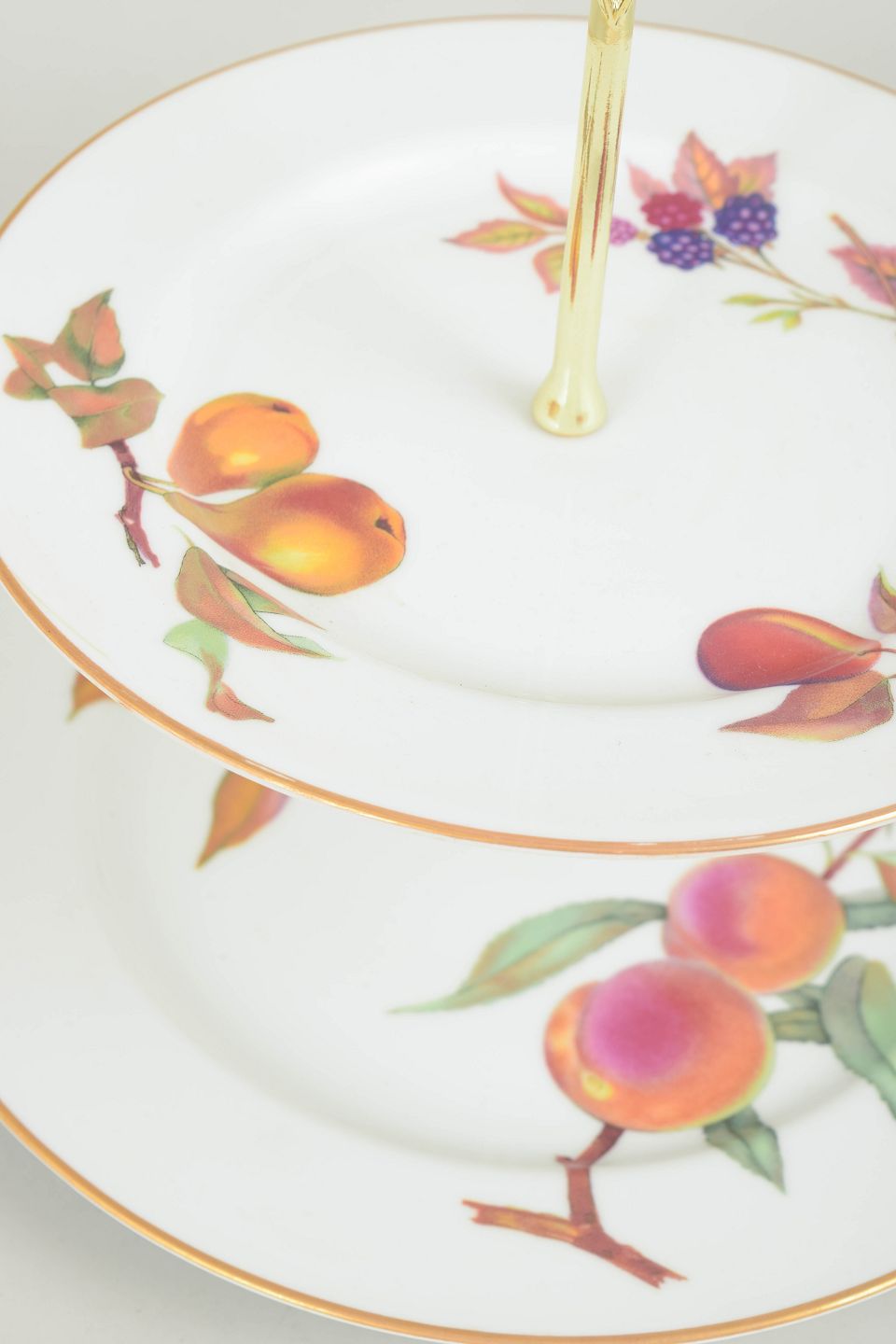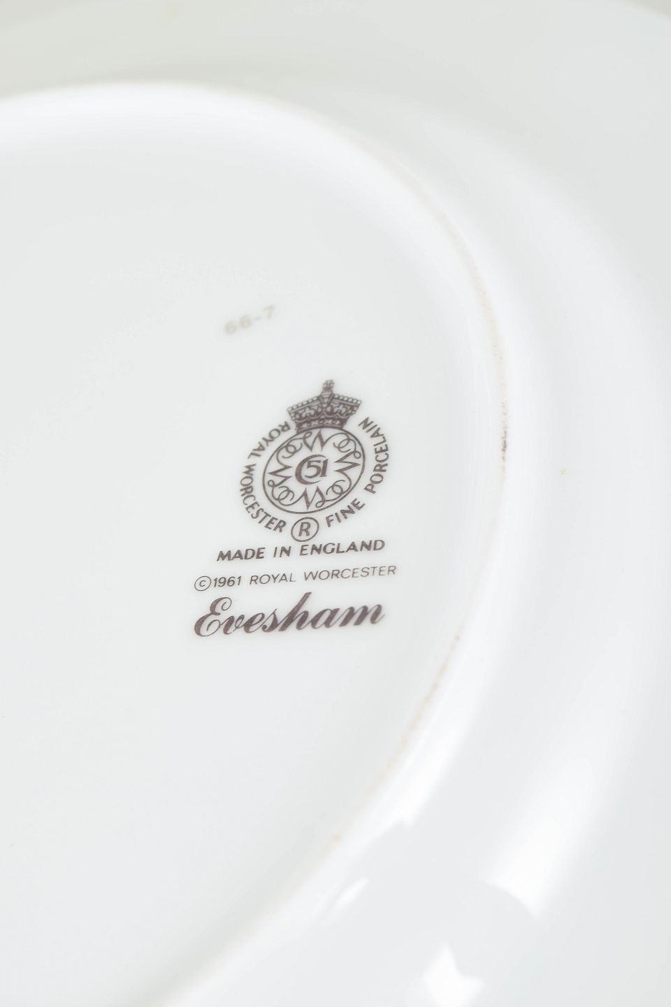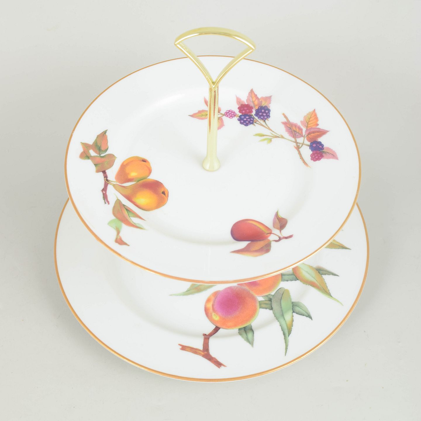 Royal Worcester blev grundlagt i 1751 i Worcester, England, og er en af de ældste porcelænsfabrikker i Europa. Fabrikken er kendt for sin høje kvalitet og sine karakteristiske dekorationer, herunder Evesham-serien, som blev introduceret i midten af det 20. århundrede med naturtro frugtmotiver inspireret af engelske haver.