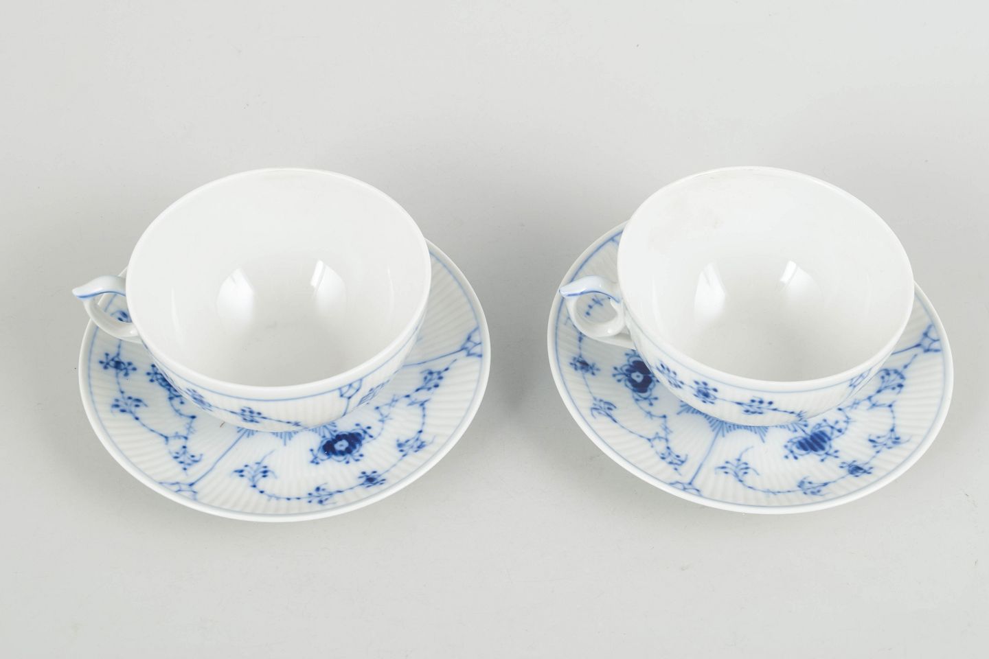 Royal Copenhagen Musselmalet Riflet to tekopper med underkopper.