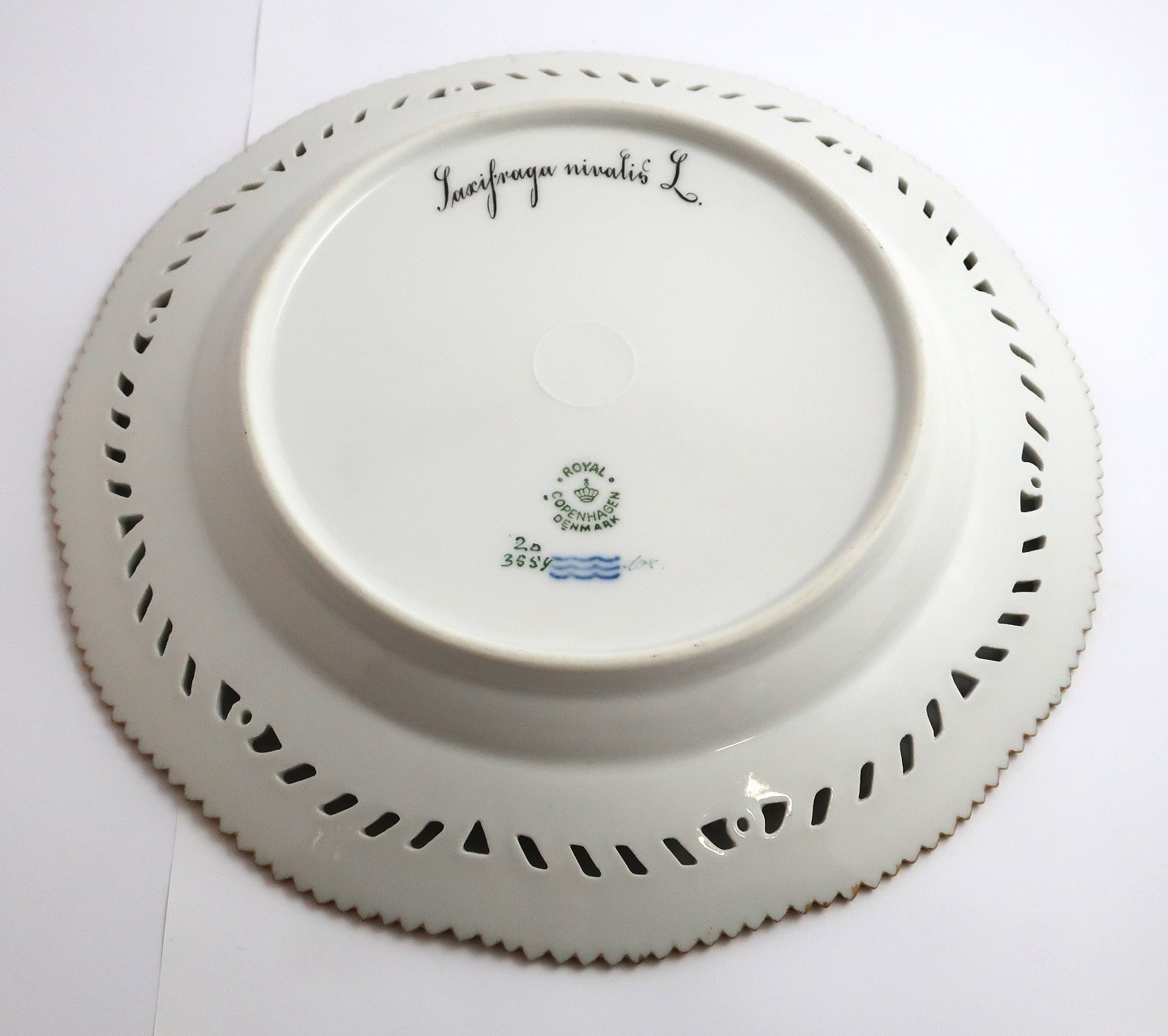 Royal Copenhagen Flora Danica. Mittagessen Platte mit durchbrochener kante. Entwurf # 3554. Durchmesser 23 cm. (1 Wahl). Saxifraga nivalis L