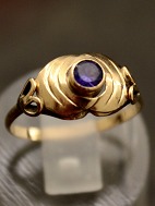 14 karat guld ring med 2 klare og to lysegrønne stene