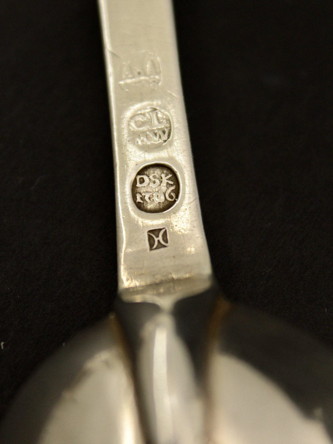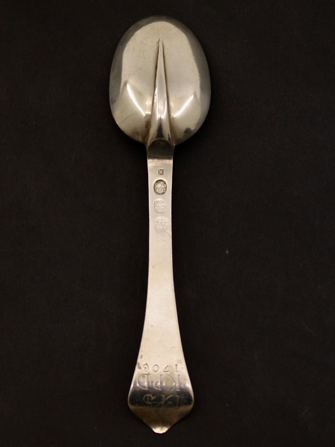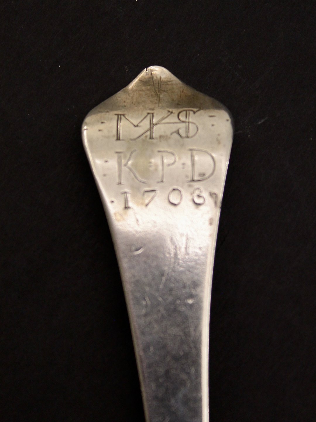 Sølvske med rottehale år 1706 fra sølvsmed D Schwartzkopf København 1698-1736 emne nr. 619593