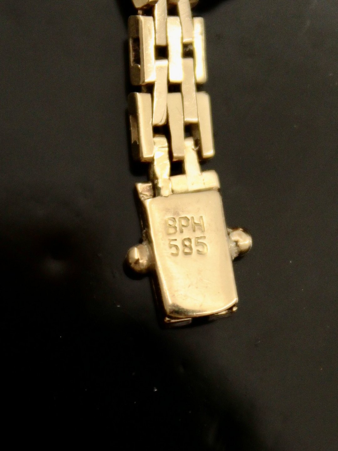14 karat guld murstens armlænke 19,5 cm. B. 0,5 cm. vægt 11,4 gram. fra guldsmed Børge Hejlund København emne nr. 619907