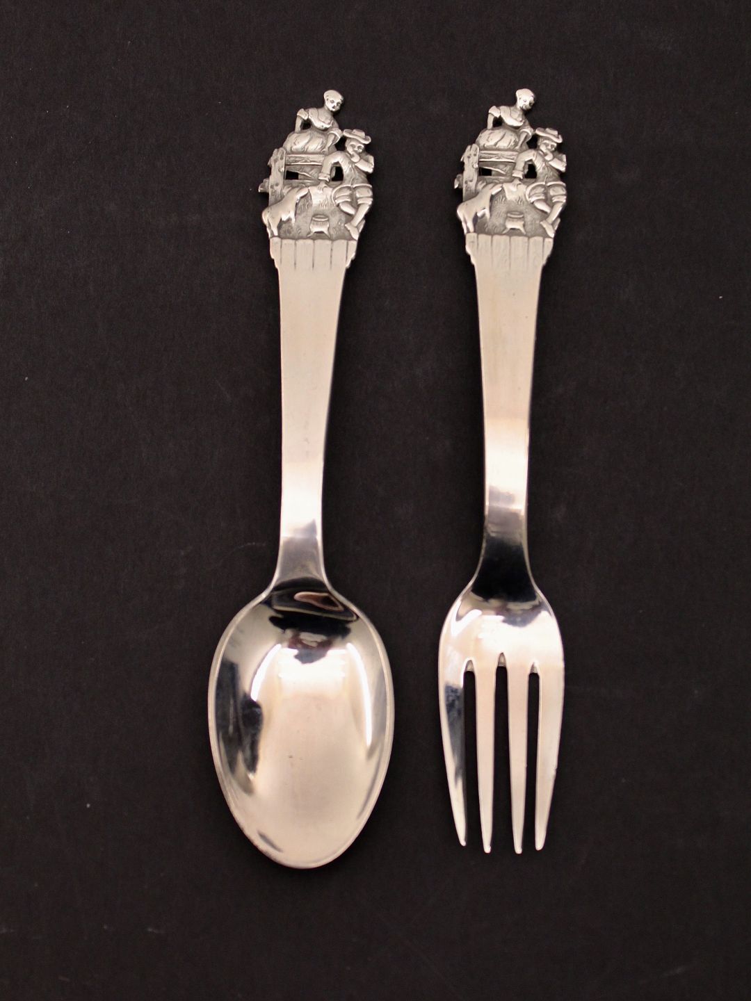 H C Andersen barne bestik 14,5 cm. "Svinedrengen" tretårnet sølv flot ingen graveringer emne nr. 632450