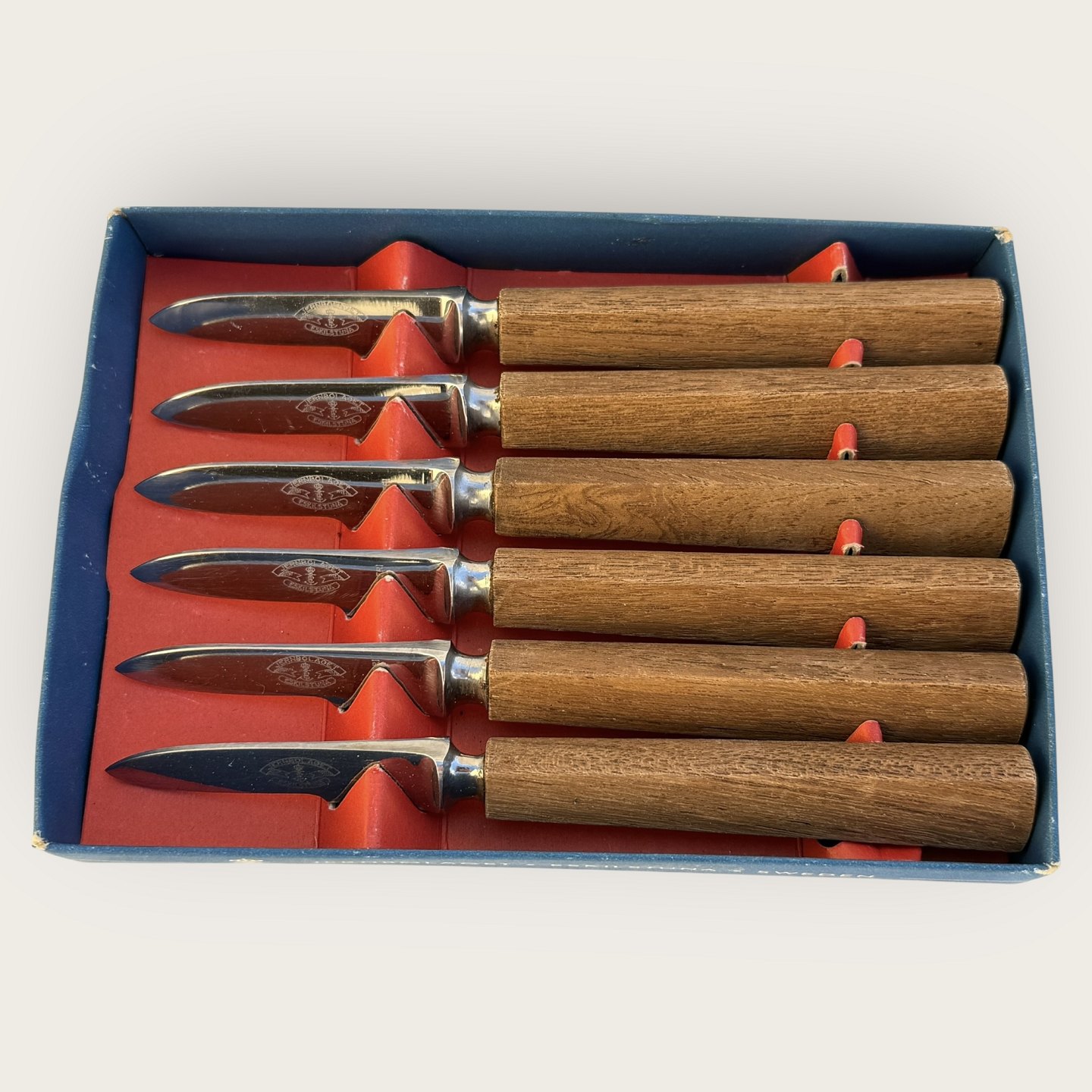 Jernbolaget Eskilstuna, Sweden, crayfish knives with teak handles, length 14.5cm, good condition