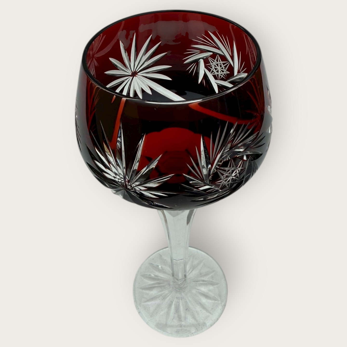 Bohemian crystal glass, Wine glass with cuts, Bordeaux, 19.5cm high, 8cm in diameter *Perfect condition*