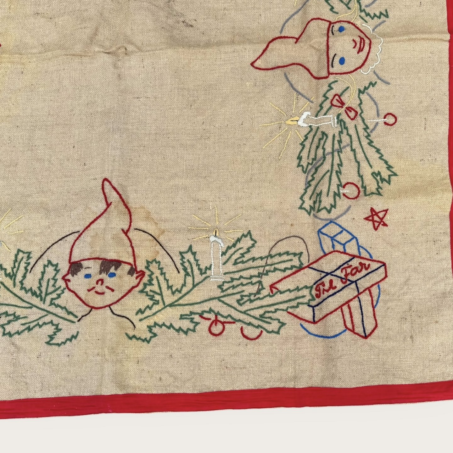 Christmas tree blanket, Embroidery with Christmas motif, 120cm / 120cm *Nice patinated condition*