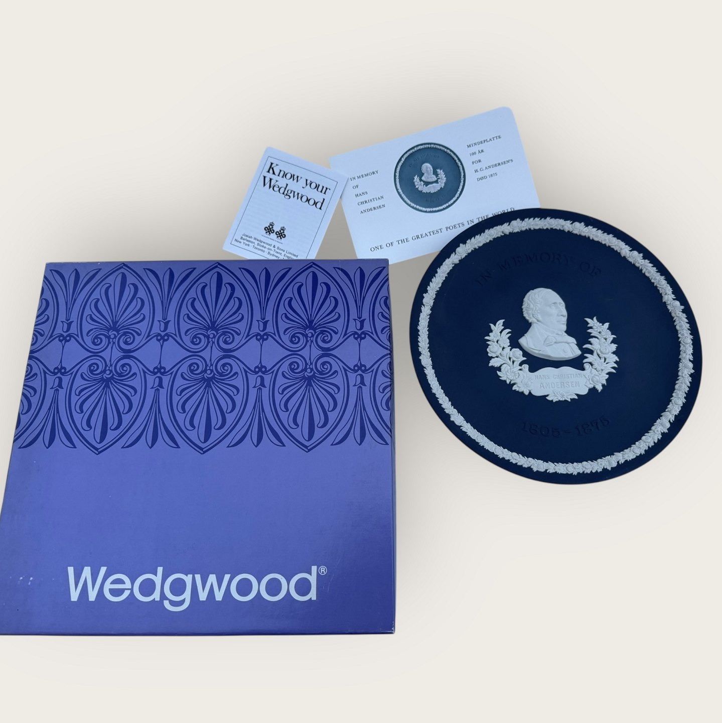 Wedgwood, H.C. Andersen, Dark Blue Memorial Plate, " In memory of H.C. Andersen 1805-1875", plate no. 1045 of 2000 pieces, Diameter 20.5cm, in original box *perfect condition*
