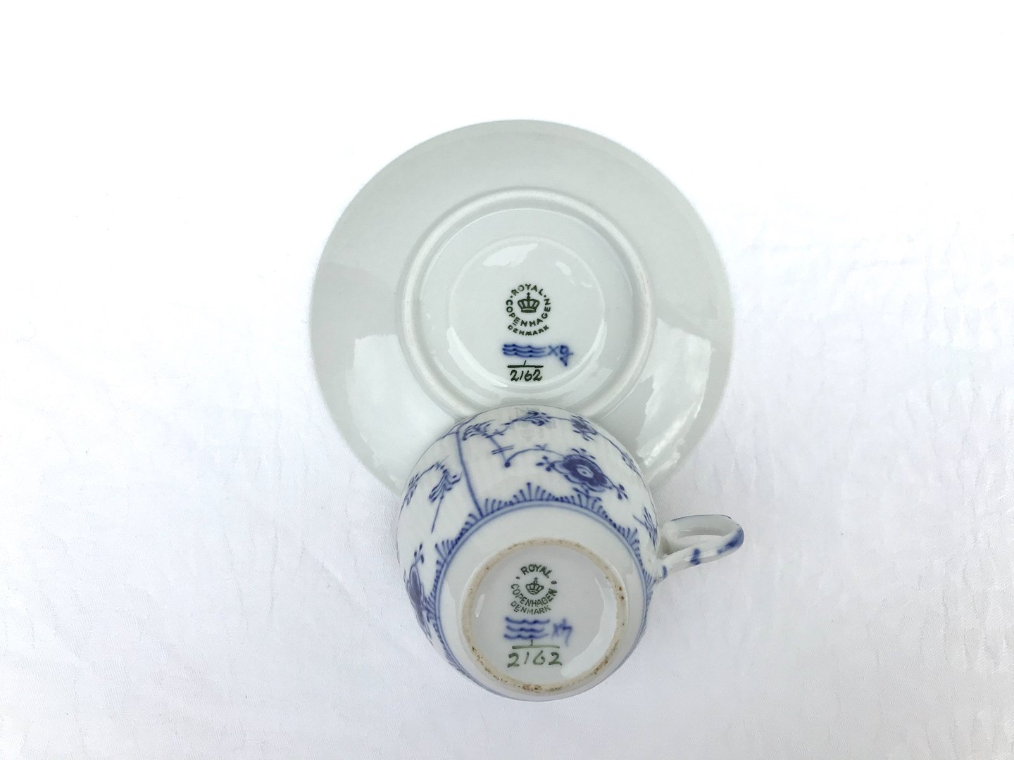 Royal Copenhagen, Musselmalet, Riflet, Kaffekop sæt #1/2162, 6cm høj, 7,5cm i diameter, 2. og 3. sortering *Pæn stand*