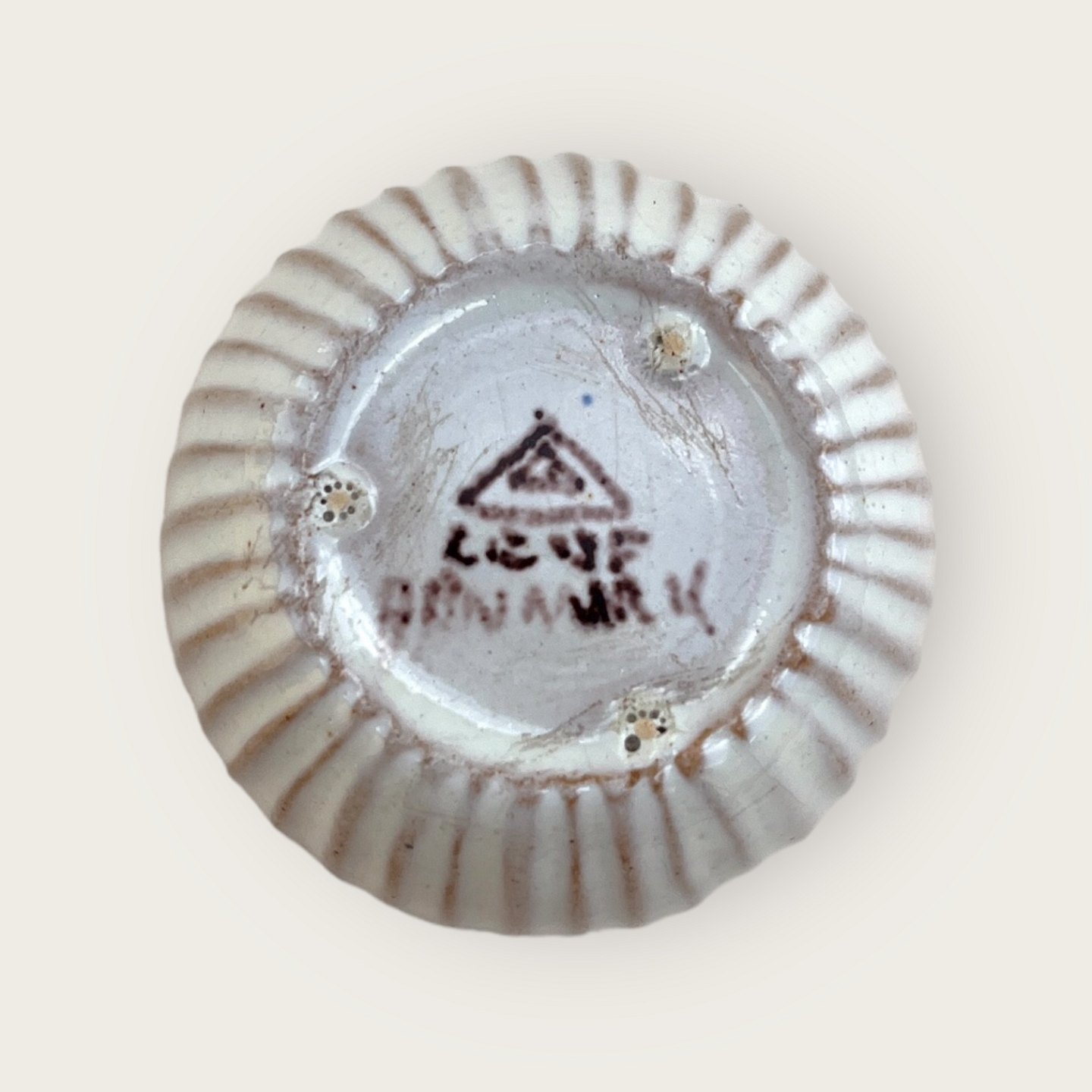 Lillemor Clement og Inger Folmer Larsen, Rillet bæger, Hvid glasur, 4,5cm i diameter, 3,5cm høj, *Pæn stand*
