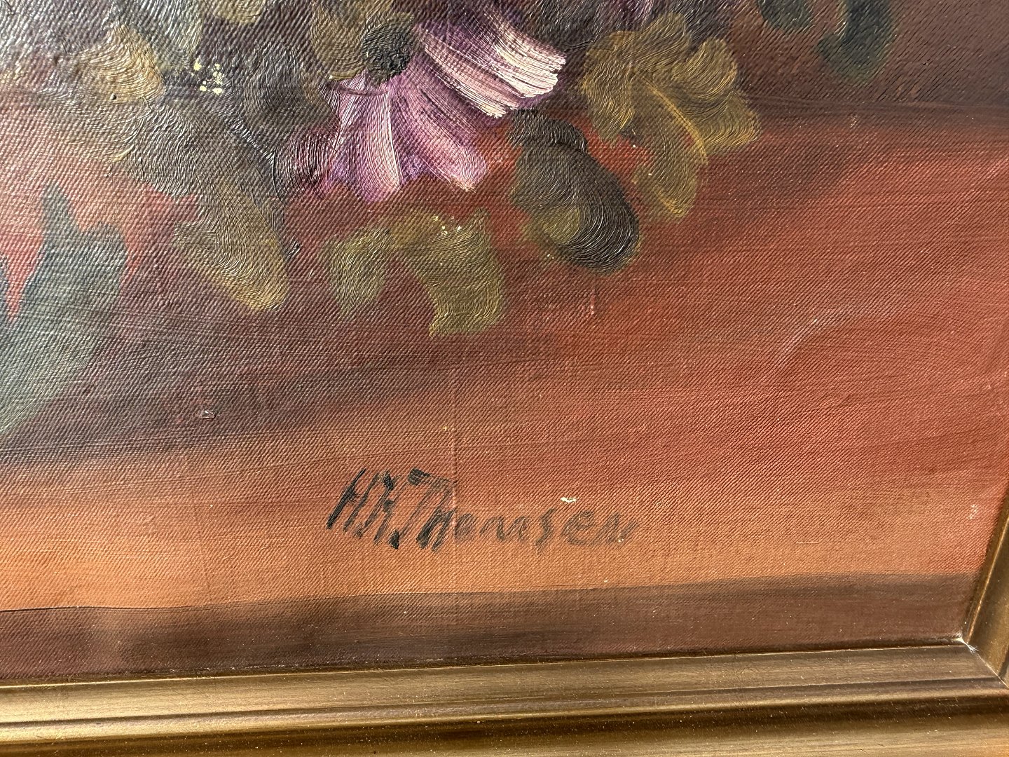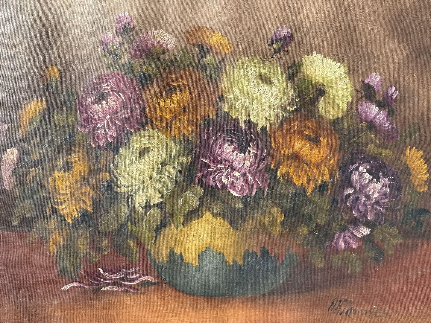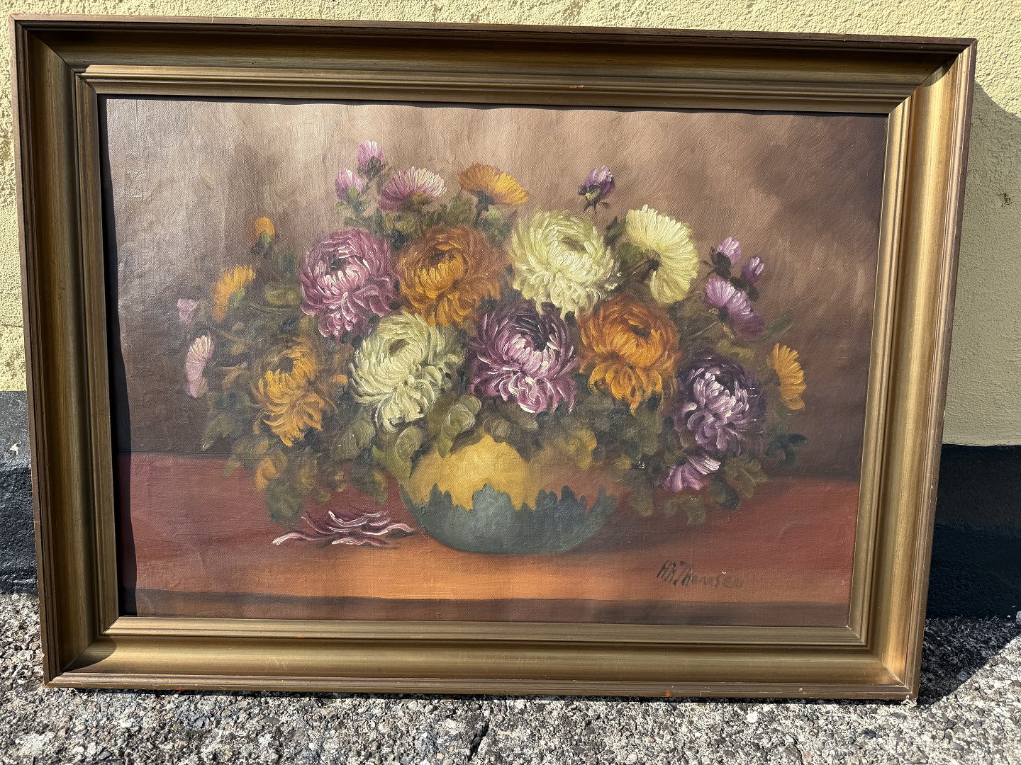 H. Thomsen, Blomstermaleri, olie på lærred, Mål med ramme 74x54cm