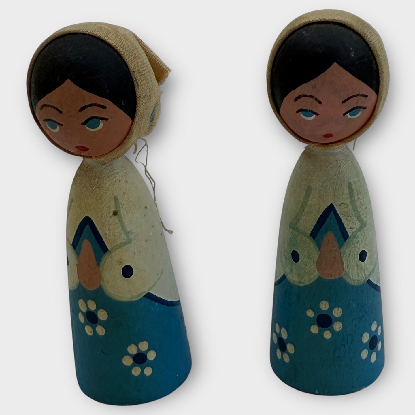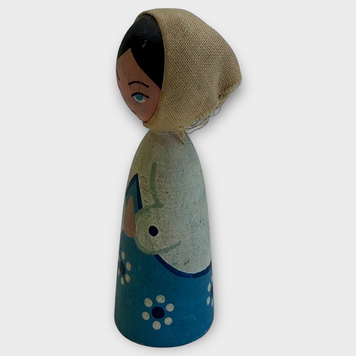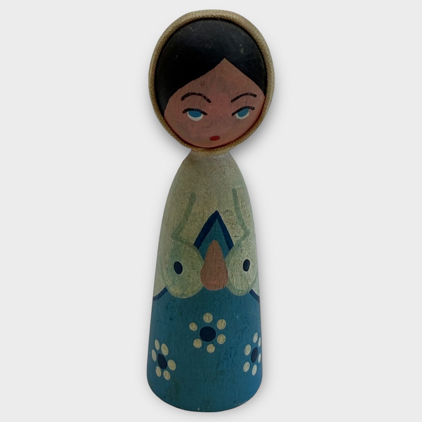 Eigenbrod Bogense, træ kvindefigur i blåt, hyrdinde, julepynt, 8cm høj, *pæn stand*