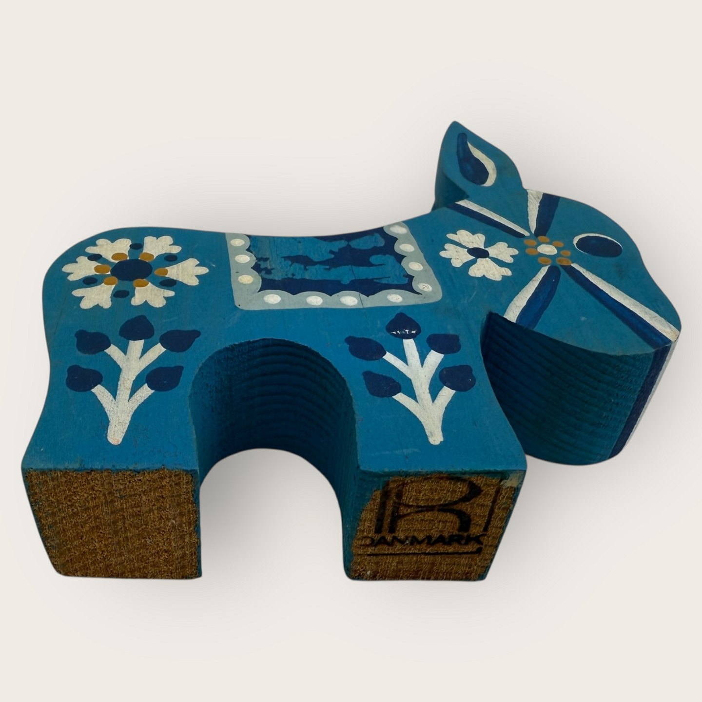 Eigenbrod Bogense, Træ æsel til julekrybbe, lidt slid på den ene side af sadlen ellers pæn stand, Mål 9x9,5cm