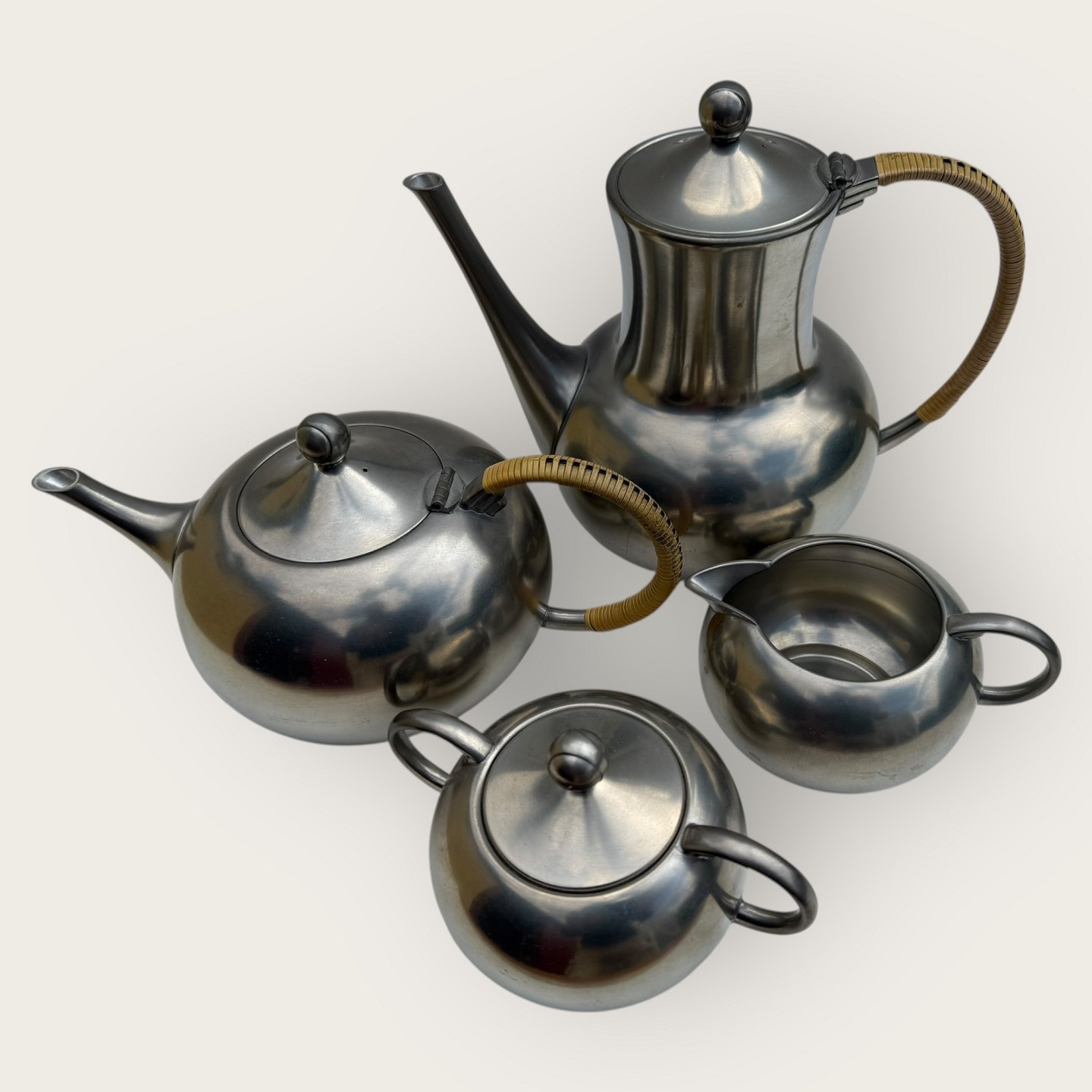 Royal Holland KMD Tiel Daalderop, Kaffekande, tekande og fløde - sukker sæt, tin sæt fra 1960'erne, fin stand, kaffekande ca. 18x22cm