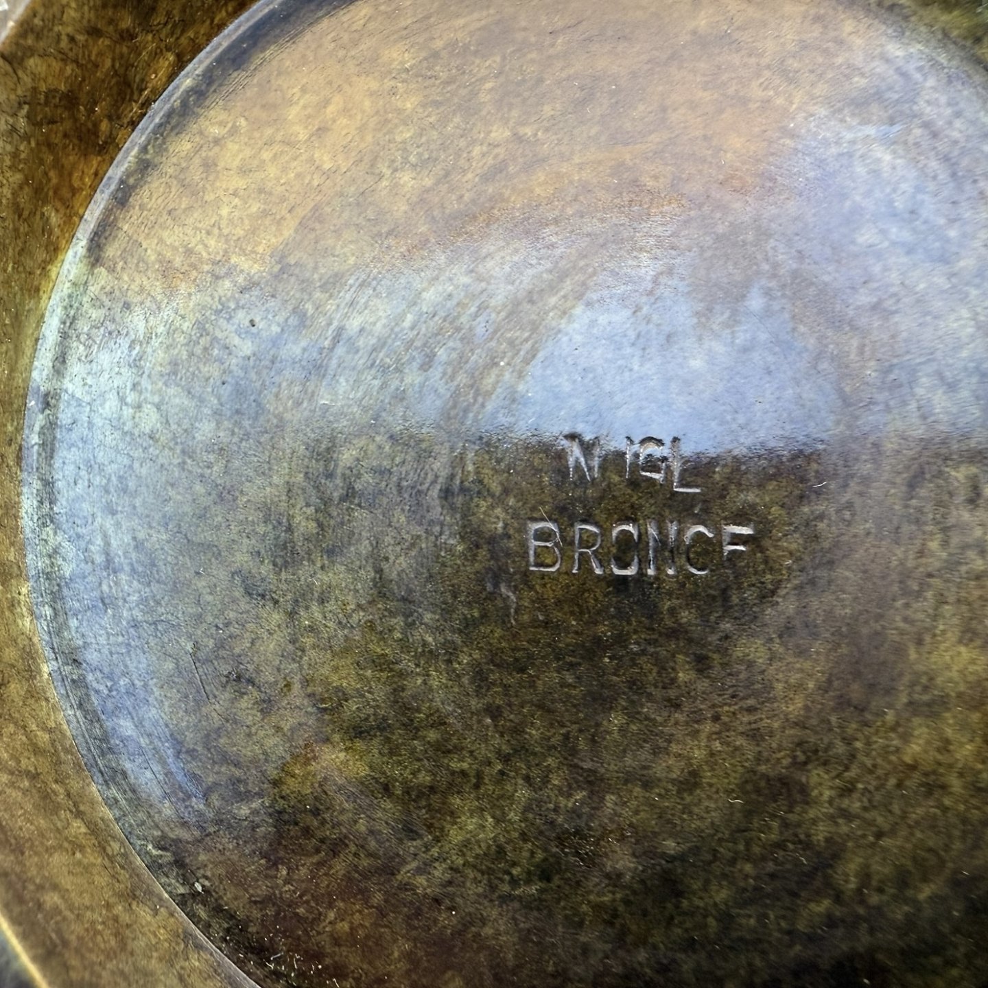 Njal Bronze fad 23cm i diameter, Stemplet: Njal bronce *Pæn patineret stand*