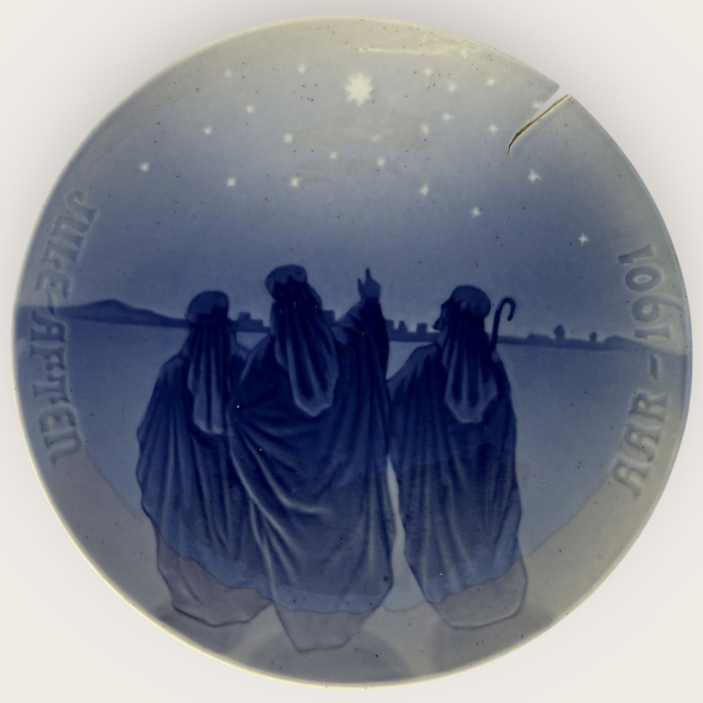 Bing & Grøndahl, Juleplatte, 1901 De hellige tre konger, 18cm i diameter, Har en original stor brændingsrevne (se foto)