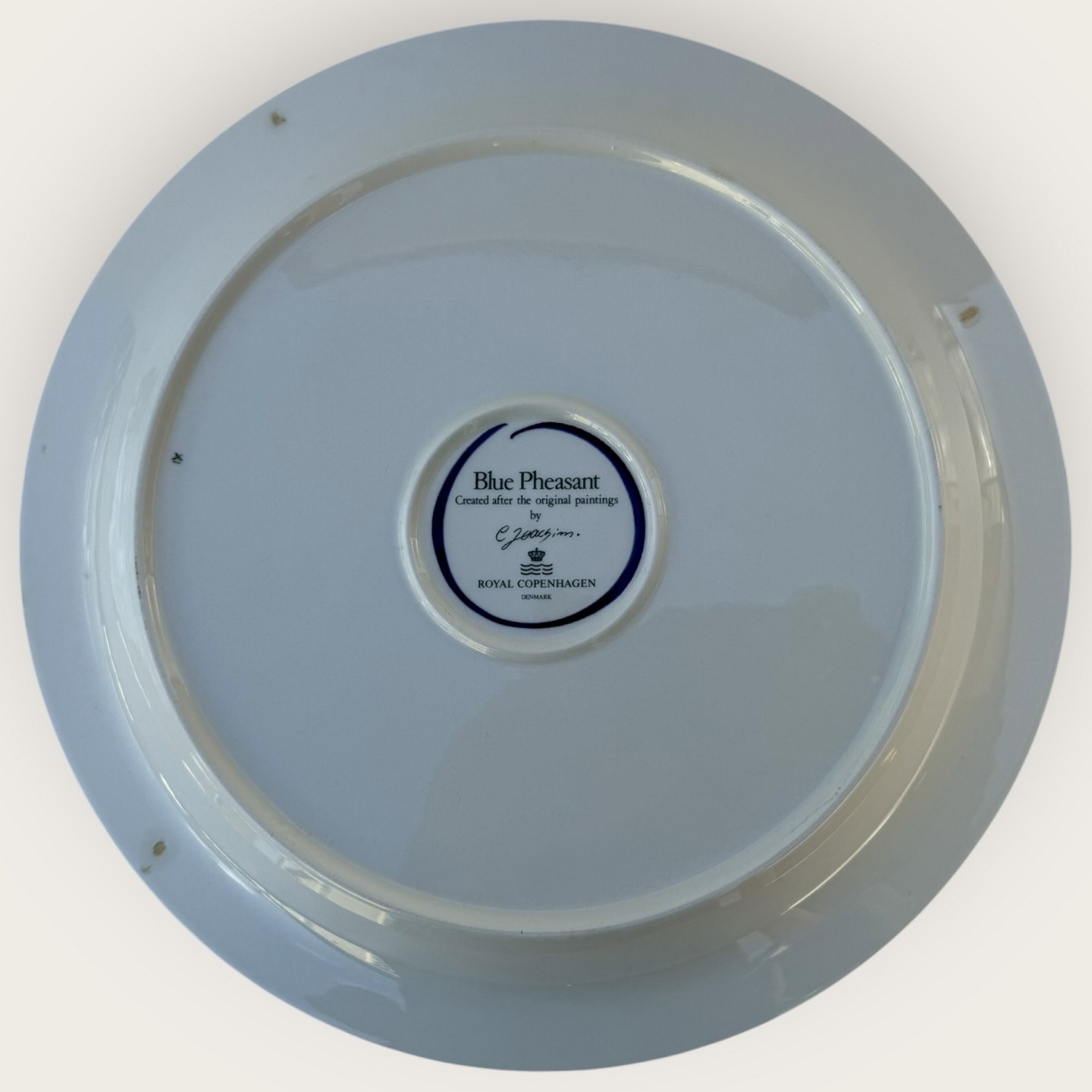 Royal Copenhagen, Blå fasan, Blue Pheasant, Stor dæk tallerken, 29,5cm i diameter, 3. sortering, Nyfortolkning af Christians Joachim's design *Pæn stand*