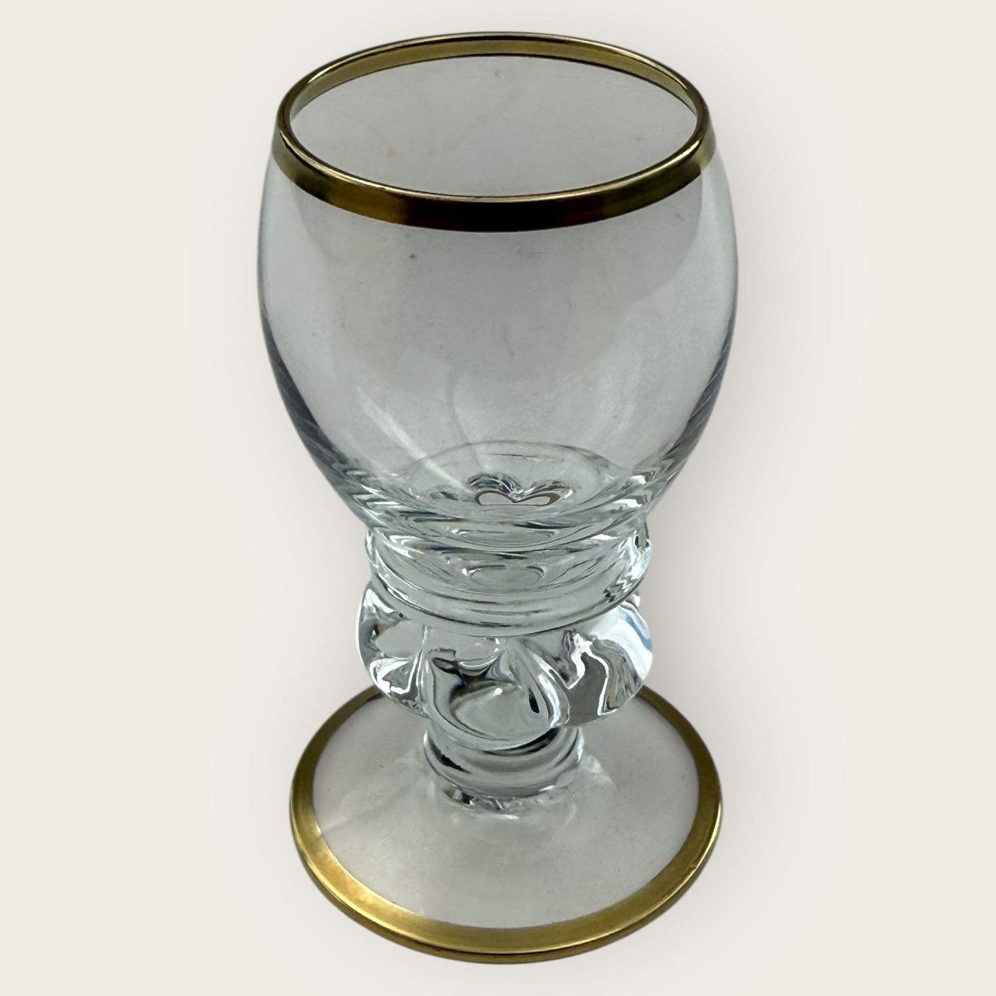Holmegaard, Gisselfeld, lille Snapseglas med guldkant, 7,3cm høj, 3,4cm i diameter, Design Jacob E. Bang *Pæn stand*